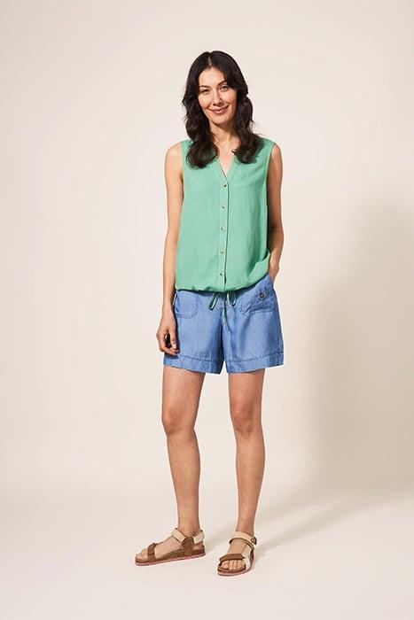 The Ferne Vest Mid Green blends contemporary elegance with timeless appeal, offering a stylish solution for everyday wear.