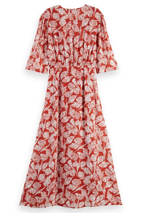 MIDI WRAP DRESS WITH KNOT DETAIL SHELL BATIK TERRACOTTA