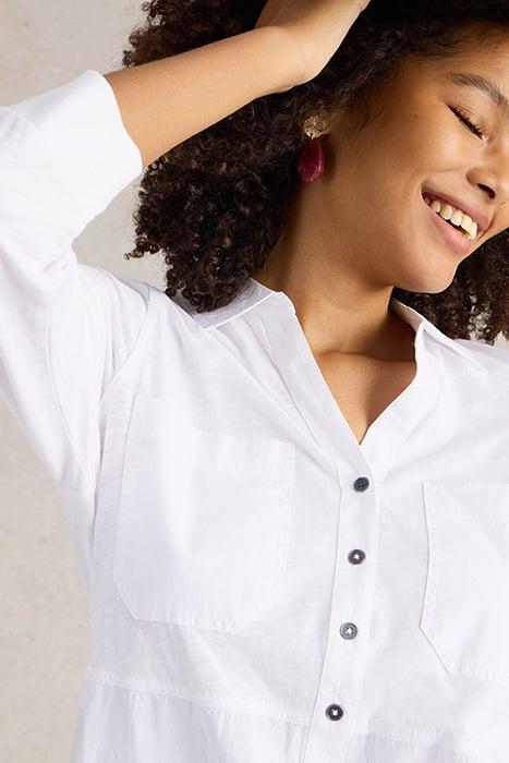 MISSY LONGLINE MIX SHIRT NATURAL WHITE