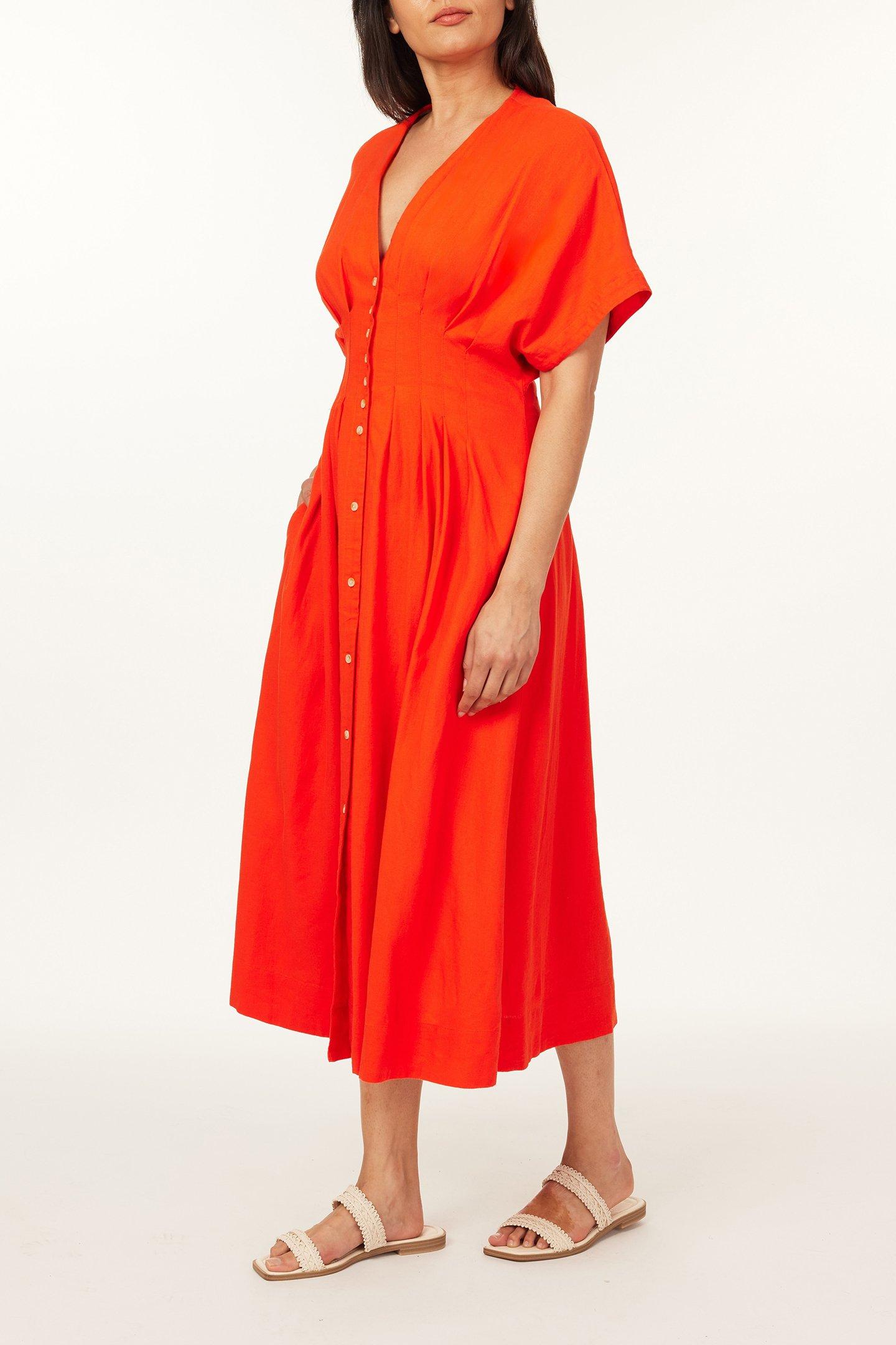 MULTI PLEATED DOLMAN DRESS ORANGE.COM