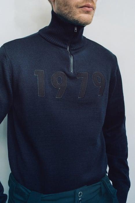 NAVY KNIT IKKS X DUVILLARD ZIP-NECK SWEATER NAVY