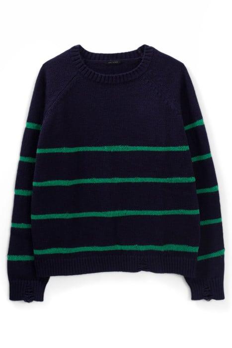 NAVY KNIT SWEATER WITH GREEN STRIPES