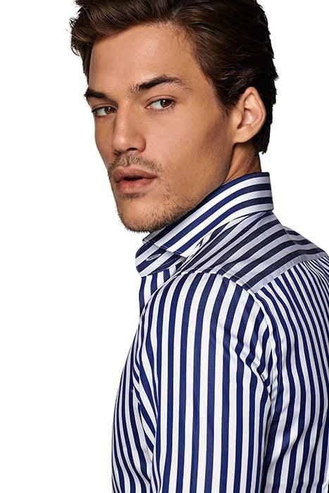 NAVY STRIPED TWILL EXTRA SLIM FIT SHIRT