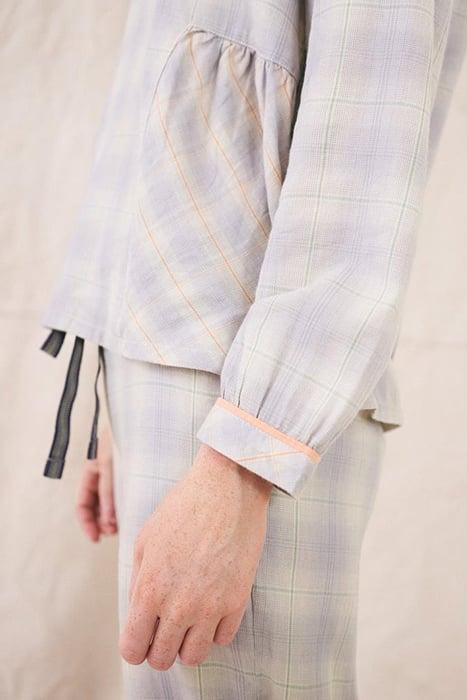 NYLA CHECK WOVEN PJ TOP NATURAL MULTI