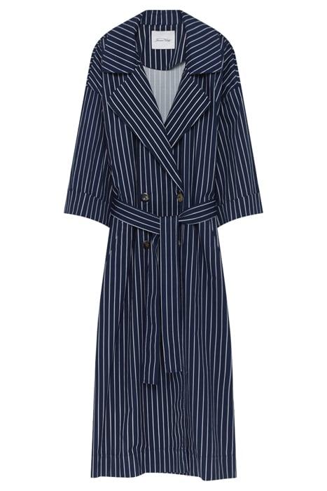 OVERSIZED BELTED LONG TRENCH RAYURES NAVY