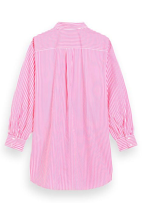 OVERSIZED POPLIN SHIRT IN FLUO PINK /WHITE STRIPE COMBO S
