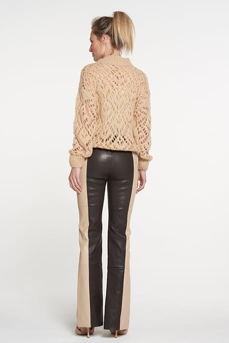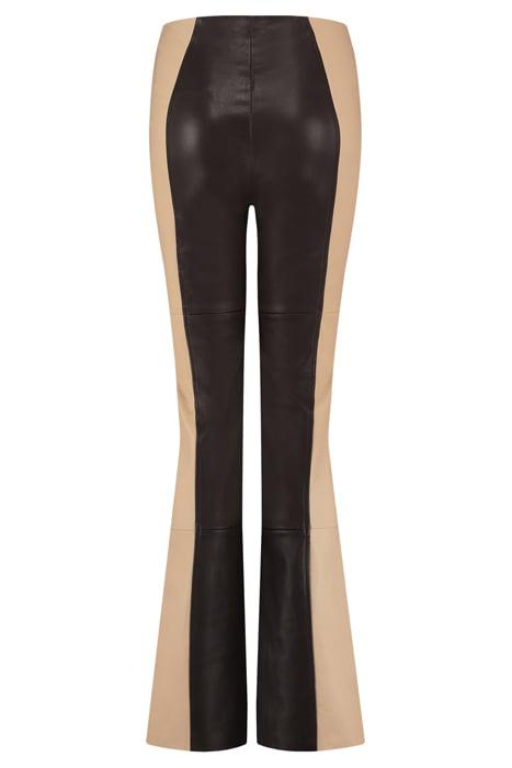 The Parduo, Made From The Quality Nappa Stretch, Is A One Of A Child Pants! It Is Double -Colored Pants That Consists Of The Colors Light Cream And Dark Brown. The Parduo Has A High Waisted Fit And Can Be Closed On The Side With A Blind Zipper. At The Bottom Of The Pipe There Is A Split At The Front Of The Pipe That Provides Extra Flair.