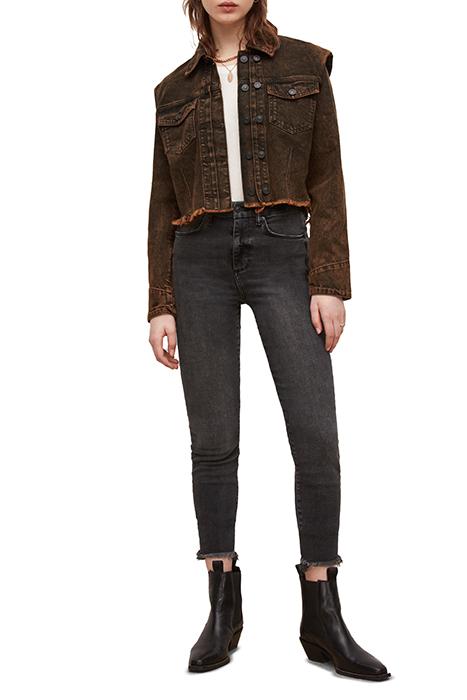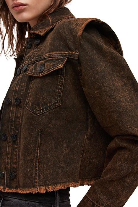 Pat Denim Jacket Mustard Black. Perfect for layering or standing out on its own, this Brown Denim Jacket is the definition of understated luxury. Pair it with your favorite essentials for an effortlessly curated look.