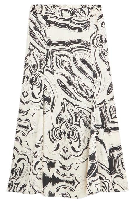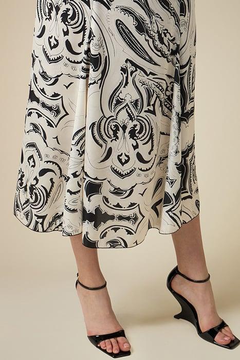 Cashmere Print Satin Long Skirt, Internal Elasticated Waistband, Made In Italy.