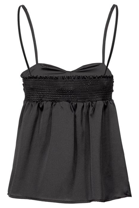 Sleeveless Top In Light Satin With A Distinctive Shiny Effect. Babydoll Silhouette With Thin Straps, Sweetheart Neckline With Ruching Details On The Cups, And An Elastic Smock Pattern On The Back.