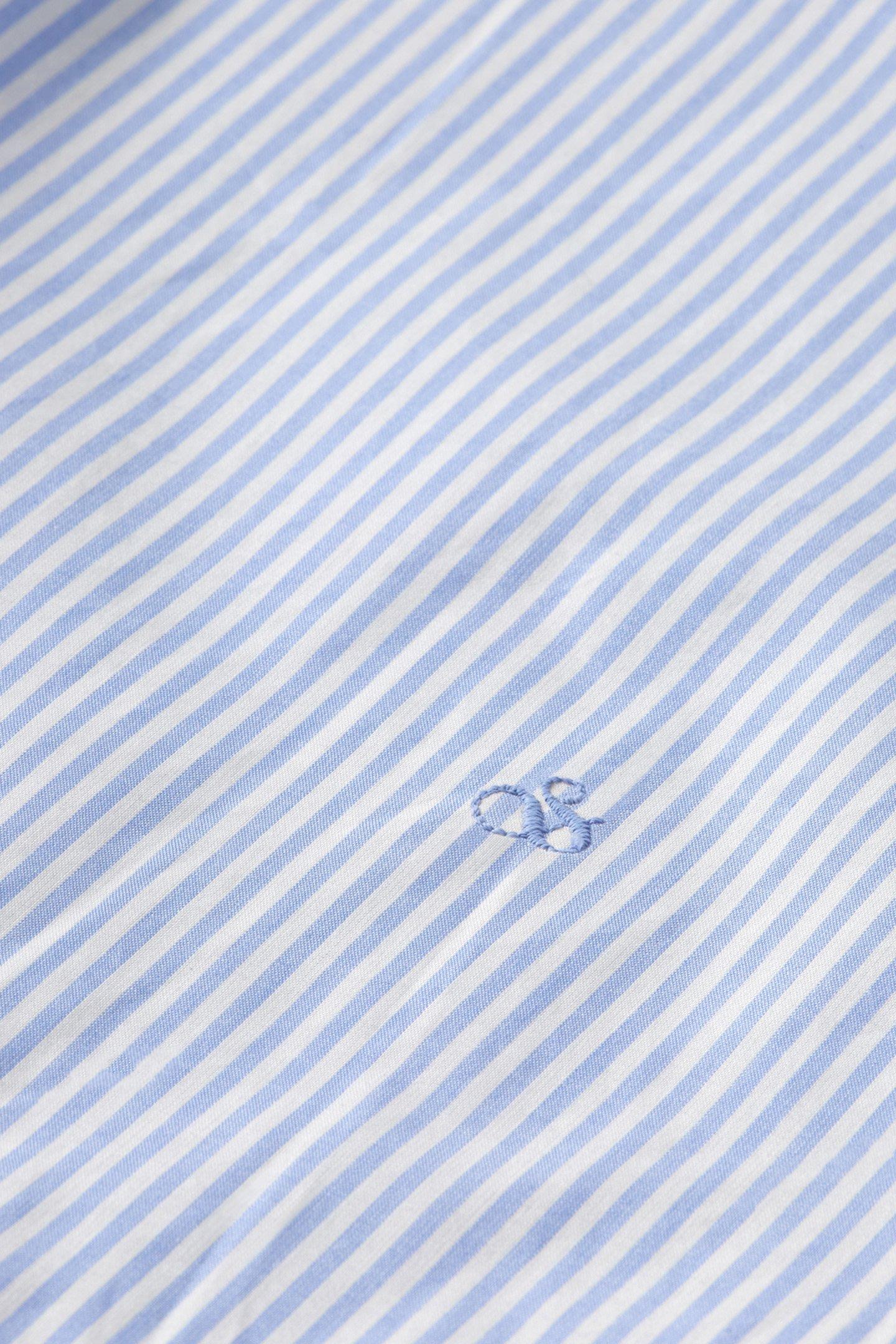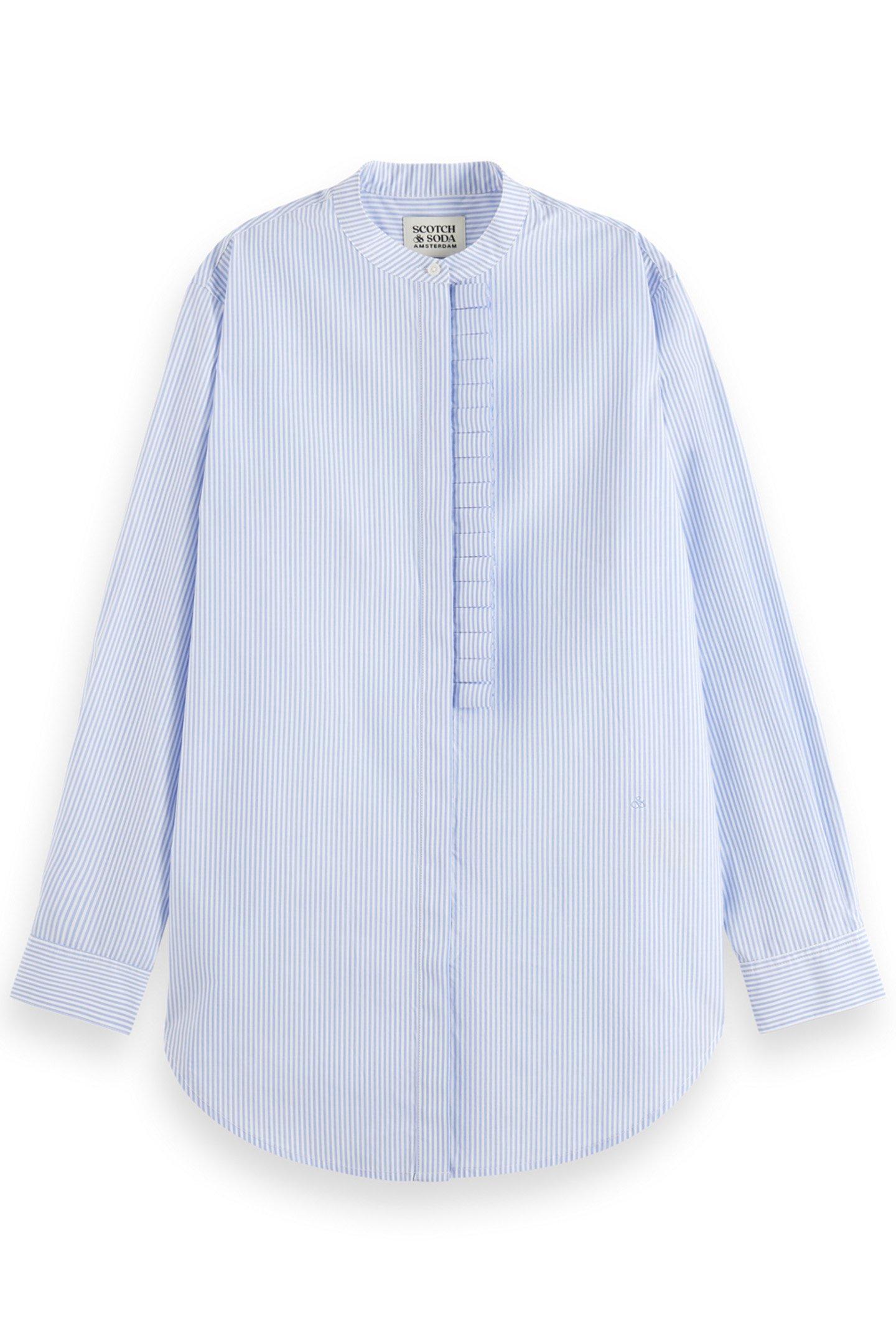 PLACKET RUFFLE SHIRT MYSTIC BLUE AND WHITE STRIPES