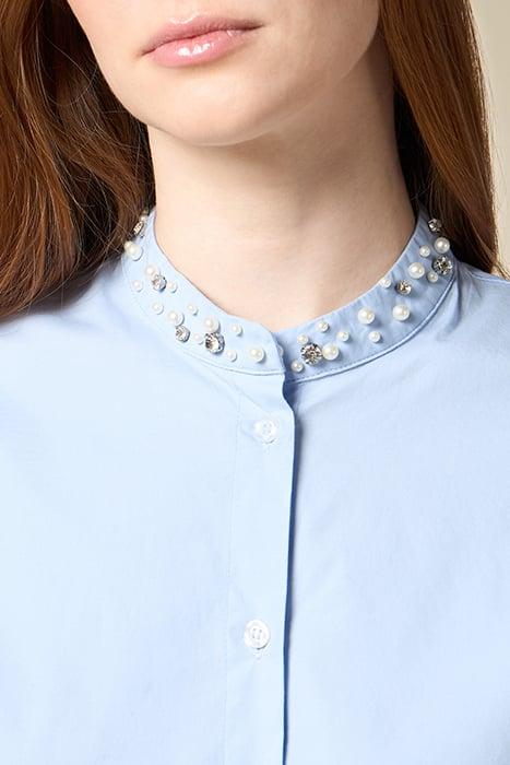 POPLIN SHIRT WITH PEARLS AND SET STONES BLUE