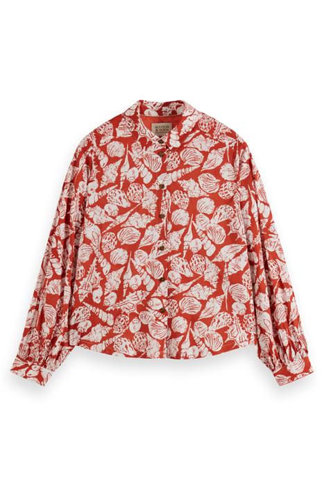 PRINTED BALLOON SLEEVE SHIRT SHELL BATIK TERRACOTTA