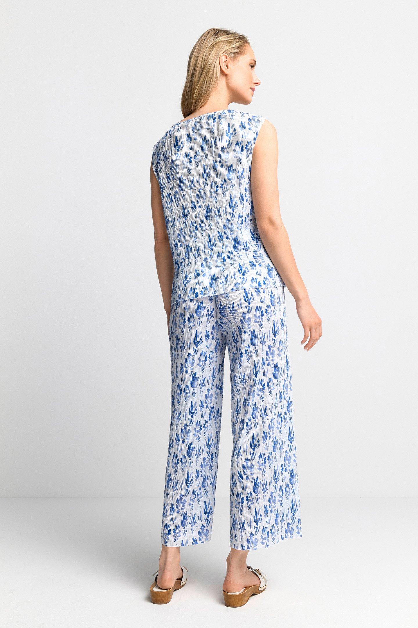 This White Sleeveless Top Adds A Touch Of Elegance To Any Outfit Thanks To Its Pleated Structure And Floral Print. We Love Pairing It With Matching Trousers And Sandals.