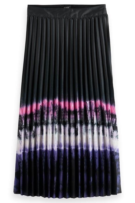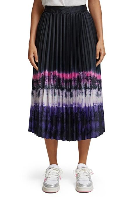 PRINTED PLEATED HIGH RISE MIDI SKIRT DIP DYE STRIPE