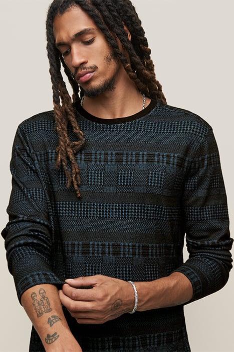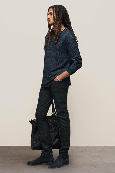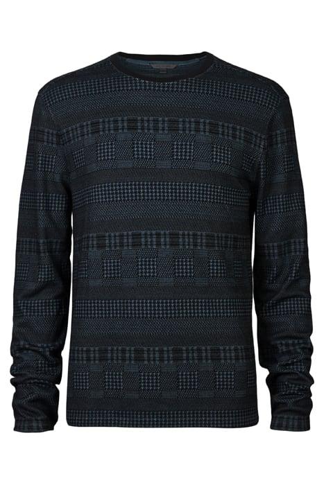 READE LS PATTERN MIX CREW WITH COLD DYE TITANIUM BLUE
