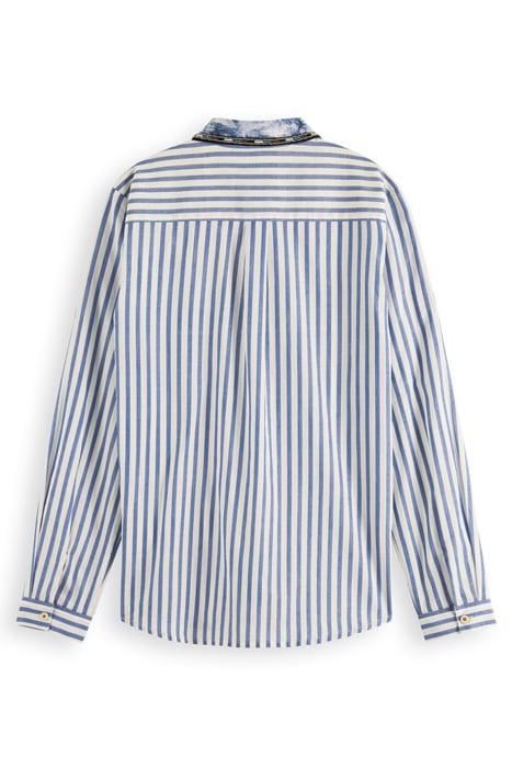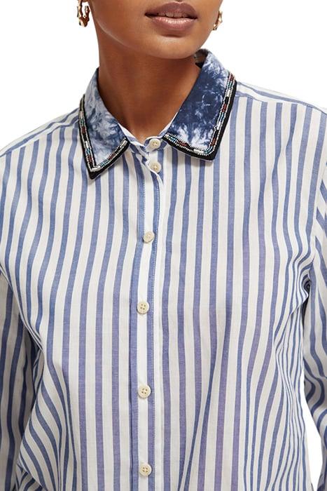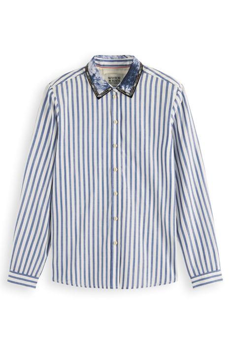 REGULAR FIT SHIRT WITH BEADED COLLAR BLUE STRIPE