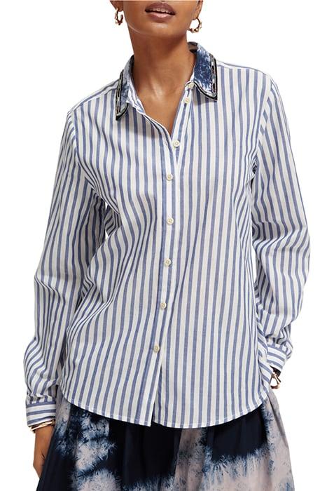 Elevate your casual wardrobe with this charming Regular Fit Shirt with Beaded Collar from Scotch & Soda. Featuring a classic blue stripe pattern, this shirt is perfect for adding a touch of sophistication to your everyday look. The standout detail of this shirt is the intricate beaded collar, which adds a unique and stylish flair to the piece. Crafted from high-quality materials, this shirt is not only fashionable but also comfortable to wear. Pair it with your favorite jeans or trousers for a polished yet relaxed ensemble. Upgrade your style game with this must-have shirt from Scotch & Soda.