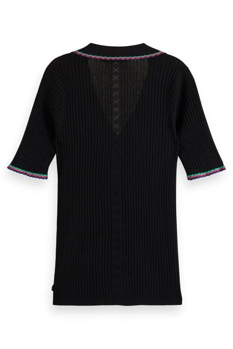 RIB COLLARED KNITTED TEE EVENING BLACK
