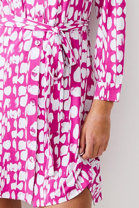 RILEY HENLEY DRESS KNEE WILD ROSA/IVORY