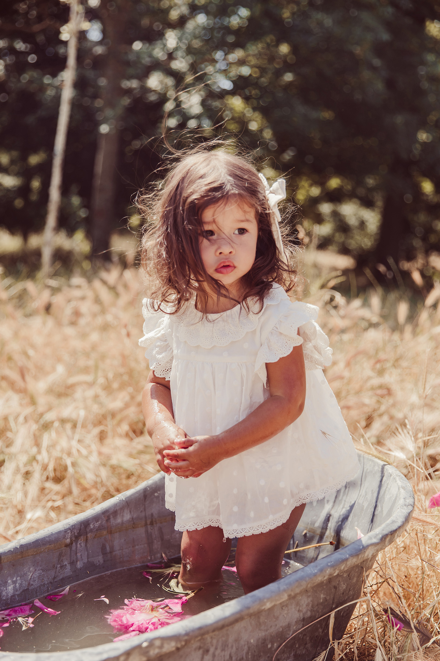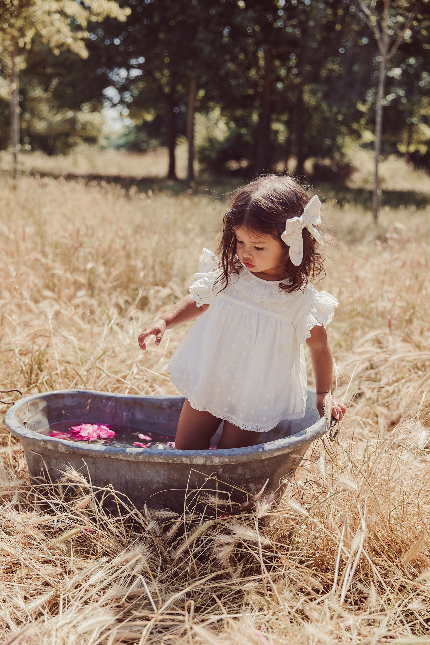Vintage-Inspired Rompers Perfect For Festive Days With Its White Color That Match The Daisies In The Garden. Its Pierrot Collar And Large Ruffle Offer A Pretty Volume That Will Make Little Girls Want To Dance From The Earliest Age.