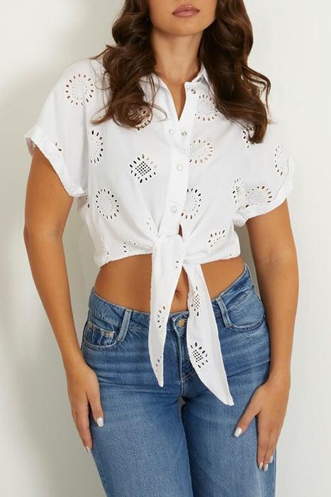 SS BRIGITTE SATIN EMBRO SHIRT PURE WHITE MULTI
