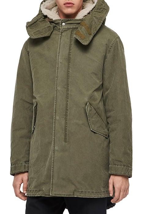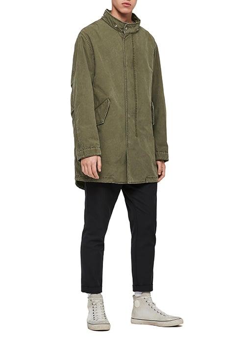 Staunton Parka Dull Khaki Green. Perfect for layering or standing out on its own, this Green Parka is the definition of understated luxury. A key addition to any wardrobe, this piece is designed for those who seek effortless style.
