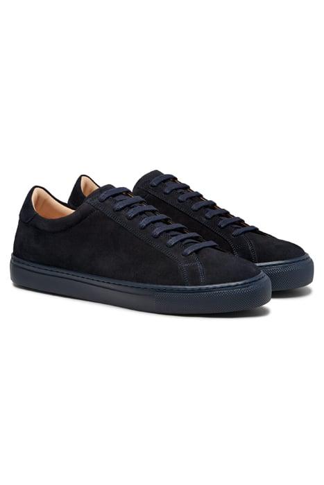 These Smart Navy Sneakers Are Crafted From Soft Italian Suede With A Full Light Brown Leather Lining And A Navy Rubber Chevron Sole.