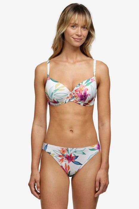 A Beautiful Preformed Bracket Bikini Top From The White Paradise Line From Livera. The Cheerful And Summer Print Feels Like That Ultimate Summer Feeling. Create A Unique And Complete Look By Combining This Top With A Bikini Pants From The White Paradise Line From Livera.