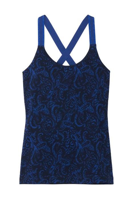 Een elegante blikvanger is deze paisley print singlet met elastische gekruiste bandjes, waarin lurex verwerkt is. Combineer het naar hartenlust voor een subliem laagje onder een warm vest of blazer.