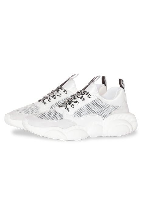TEDDY RUN SNEAKER IN MESH, CALFSKIN AND SPLIT LEATHER WHITE