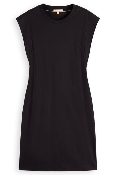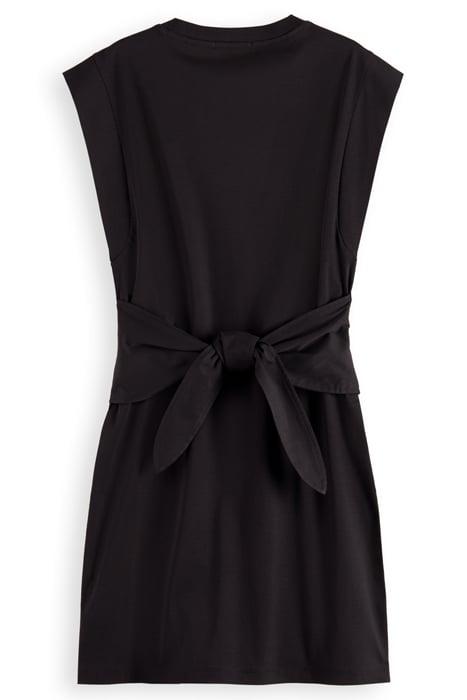 TIE WAIST MINI JERSEY DRESS EVENING BLACK