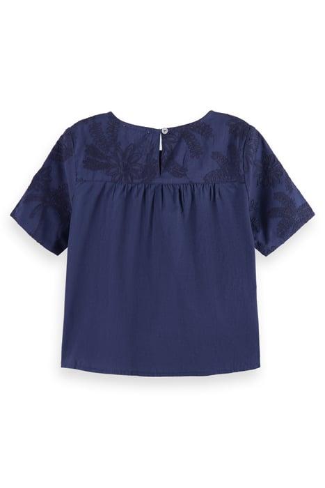 TONAL CHAINSTITCH EMBROIDERED SHORT-SLEEVED TOP NIGHT