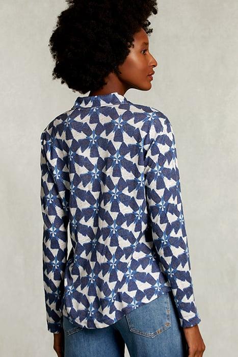 WHITE/BLUE LINEN T-SHIRT WITH BUTTONS BLUE