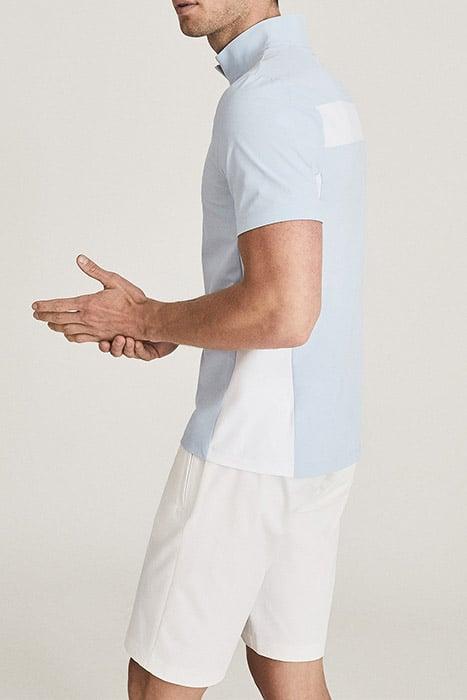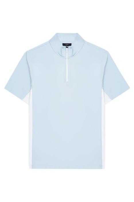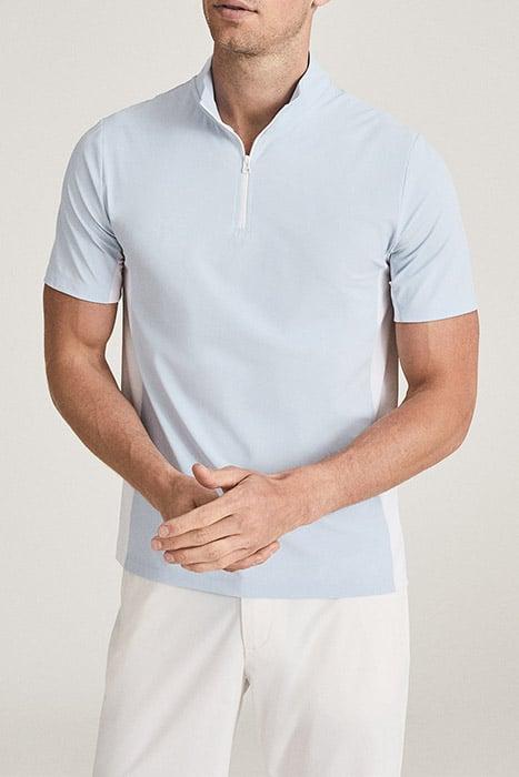 We Are Proud To Introduce Reiss Golf – An Extension Of Our Activewear Range Tailored For The Sport. Designs Take Hints From Tiger Woods' Course Style, While Reiss' Urban Sensibility Comes Into Play. Engineered For The Movement And Performance Requirements Of Golf, The Wingfoot Zip-Neck Top Comes In Versatile Soft-Blue While The Stretch Fabrication Prioritises Comfort And Lightness, Ensuring Minimal Friction When Playing. Then, On Dull Days Of No Golf-Playing, One Can Still Appreciate This Sportive Collection That Looks Just As Elegant In Laidback Social Plans And Downtime, Styled As Part Of Your Existing Reiss Wardrobe. * Colour-Block Design * Short Sleeves * Slim Fit * Zip Neckline * 4-Way Comfort Stretch * Quick-Dry * Moisture-Wicking * Breathable * Rubberised Zip End * Rubberised Zip * Rubberised Logo * Sporty Details .