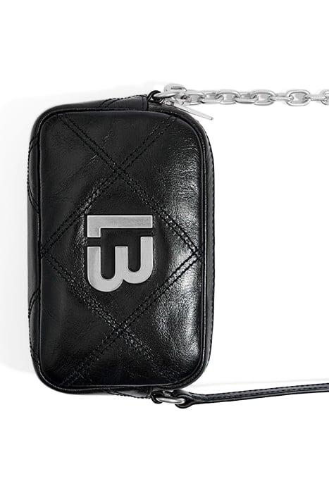 Leather Crossbody Bag In Black Leather. Mini Model With Zip Fastener And Chain And Leather Strap. Exterior Customized With Metal Lb Logo. 60% Recycled Fibers.