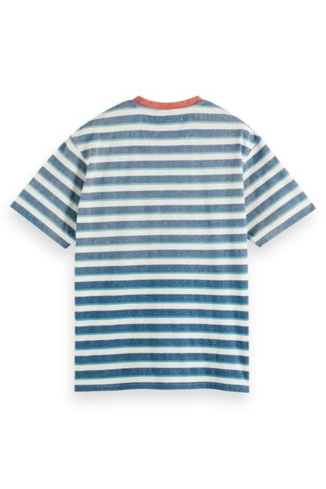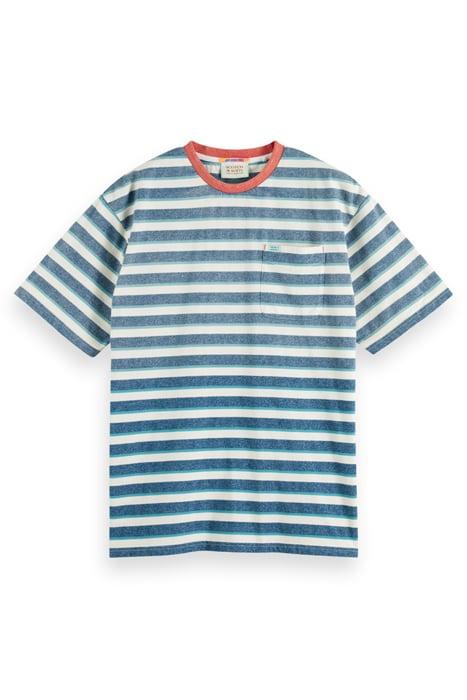 YARN DYE STRIPE POCKET T-SHIRT OFF WHITE / HARBOUR TEAL MULT