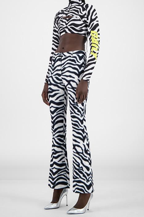 Our vision for the future of female athletic performance apparel, this two-piece top is composed of a cropped funnel neck track jacket layered over a sports top. Cut from a zebra print fabric, this piece blurs the line between loud print and monochromatic neutral. Stretch fabric provides a bodycon fit that's adaptable to all body sizes, with the cut-out design and cropped hemline keeping you cool and comfortable as the temperature begins to rise.